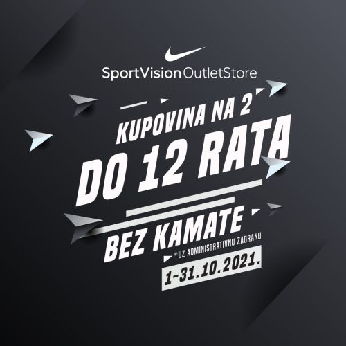 Samo u oktobru imate mogućnost kupovine uz plaćanje do 12 rata bez kamate. Posjetite Nike Outlet na Stupu i iskoristite odlične uslove za kupovinu.
